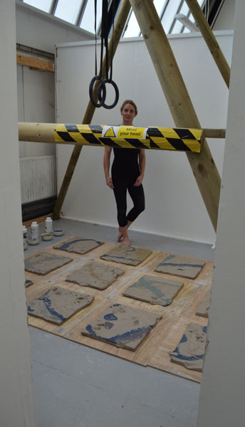 High Kicks 3 installation, post performance, The James Hockey Gallery, Farnham