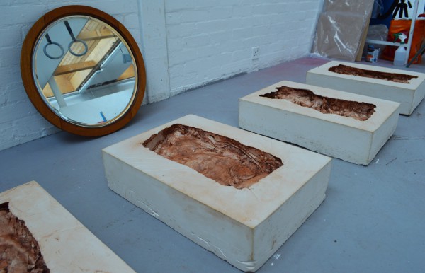 Detail of Becoming, relic Impact Trace Objects, cast in plaster
